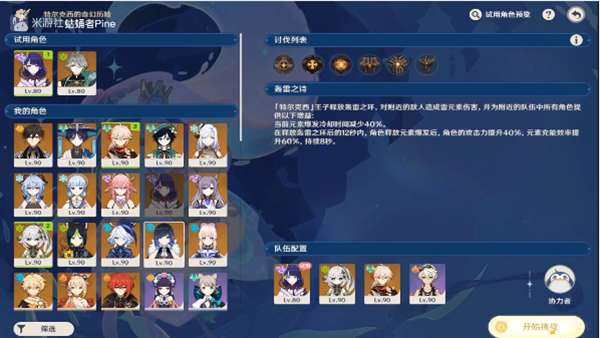 我的配队:雷神(试用)+草神+万叶+班尼特