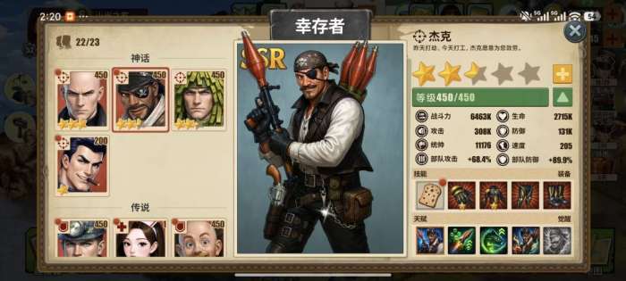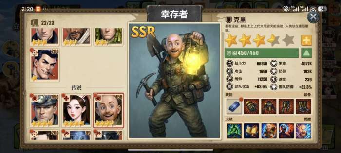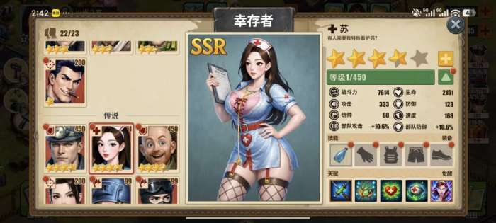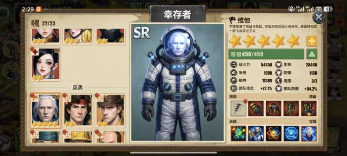 尤其是在6人队全员450级,雷达站卡在410层之后,要逐步把队伍里的传说幸存者替换为两星以上的神话幸存者,这样队伍才能有更高的培养上限。