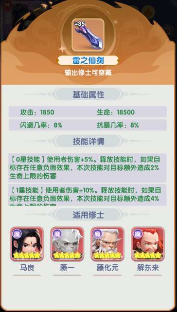2、雷之仙剑:加伤,先有即可,后续看情况培养。