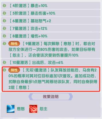 有3个本体,可以把马良培养到无双1星,这个时候的马良,才算有真正意义上的输出。