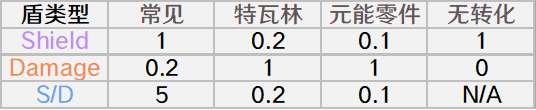 大多数常见盾的S和D值就为1和0.2。虽然是这样定义的,我们从来都是说5倍血,也从不会说这个盾只有1倍血,但是。