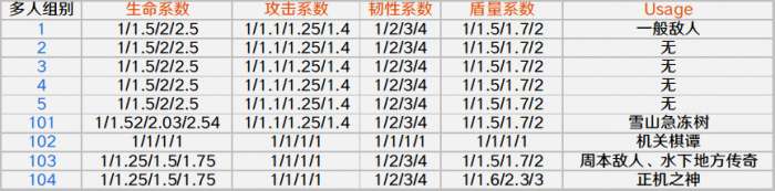 盾的元素量获得提升,2/3/4人的多人模式下,盾的元素量乘以a/b/c倍,一般为1.5/1.7/2倍,提升前后的盾量不影响所继承的生命值。
