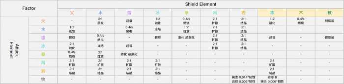 ◆伤害转化:当盾受到非对应元素伤害所应扣除的盾量;下文将慢慢讲解;