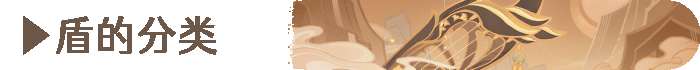 盾按元素就分为火元素盾、水元素盾、雷元素盾、草元素盾、冰元素盾、岩元素盾、非元素盾;