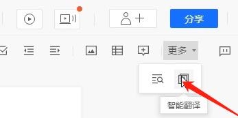 3、点击上方工具栏中的更多,智能翻译,就可以翻译该文档了。