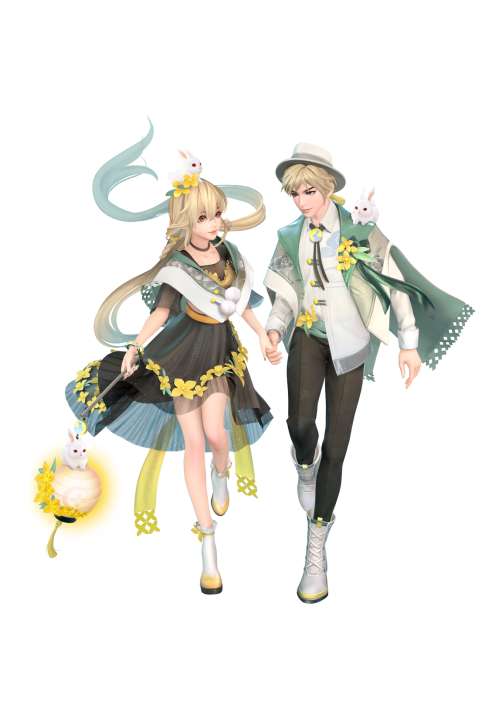 本次的节日主题时装为月桂兔而且和以往一样分为了男女两种款式,在造型上运用了很多带有中秋特色的元素从而让这件套装拥有了很浓厚的节日氛围。新出的月桂兔套装看官方给出的宣传图的正面还是很不错的,玉兔相伴、规划点缀,现代中又蕴含着古朴的意境。