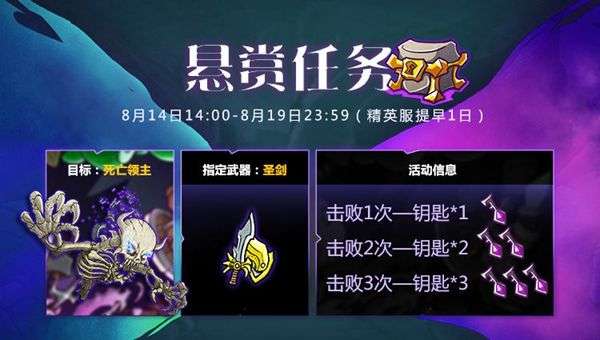 第一阶段:使用圣剑击败死亡领主1次,奖励:公会宝箱钥匙*1