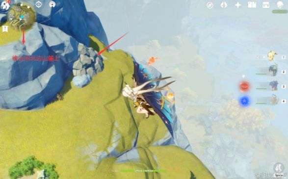 得先爬到一个山顶,上面有个鸟的雕像,可以转,转向神像方向就能看见了。
