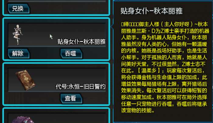 这是女仆吞噬(目前看是不额外增加宠物箱)