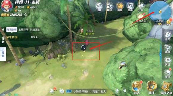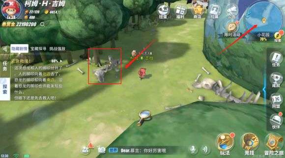 据说小花园中部附近有人在唿救,他和他的伙伴因为被恐龙吓到了,两人走散,帮忙找他的另一位伙伴。
