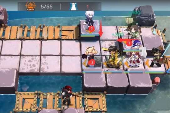 开局部署执旗手(向左)→ 棘刺(向左)→ 推推干员