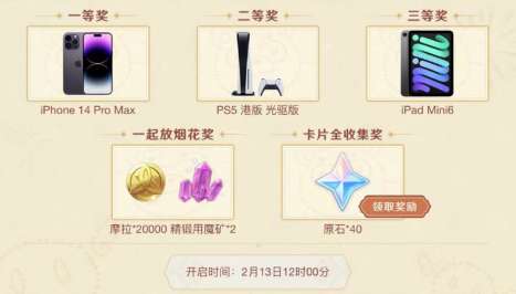 集满11张卡片之后,就可以领取40原石。不用担心收集卡片麻烦,完成了任务,第一天基本都能集满。还能参与抽奖,不会真有人抽到iPhone吧,不过有摩拉和矿也不错。