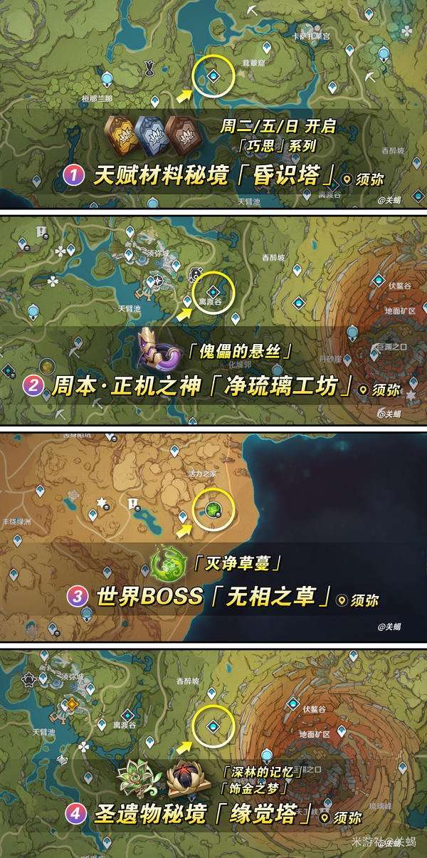 • 世界BOSS材料「灭诤草蔓」来自世界BOSS「无相之草」掉落,位于须弥