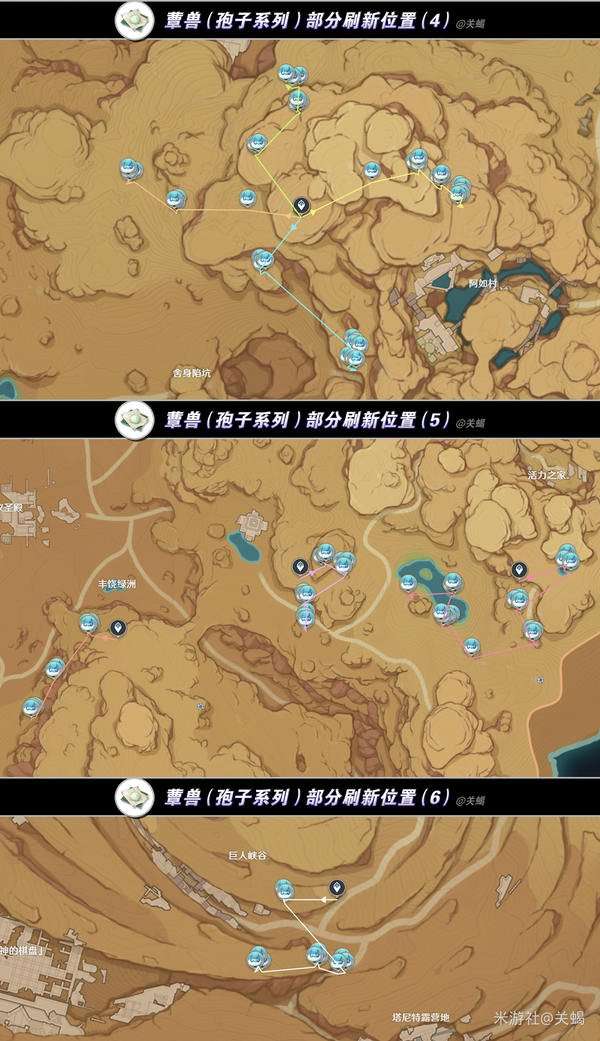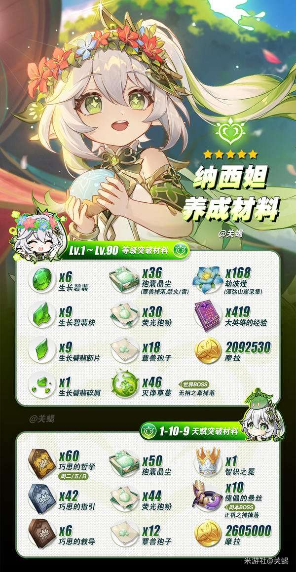 包含角色等级「lv.1~lv.90」和天赋等级「1-10-9」所需要的突破材料清单;天赋、周本、各BOSS、圣遗物等材料秘境挑战位置,以及采摘收集类材料位置路线图。
