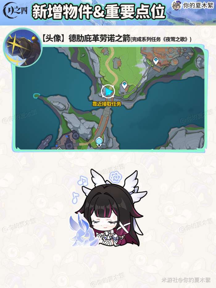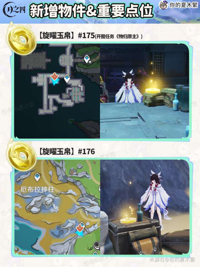 软件提交 专题合集 热门手游原神月之四新增物品在哪里收集,给大家带来【月之四】新增的物品收集,包含:新增食谱×4、新增旋曜玉帛×8、新增地灵龛×3、新增盈藏之地×3、新增地方传奇×3、新增头像任务×1的收集点位。