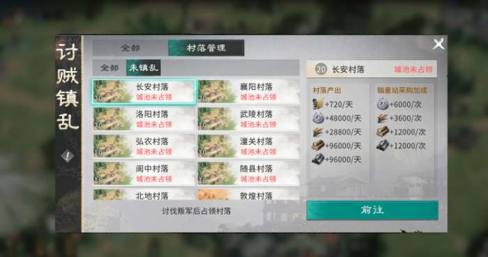 1.【村落产出】:一个20级村庄每天可产出48000银币