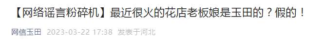 玉田网信办也迅速发布辟谣公告该信息内容不属实!是谣言!