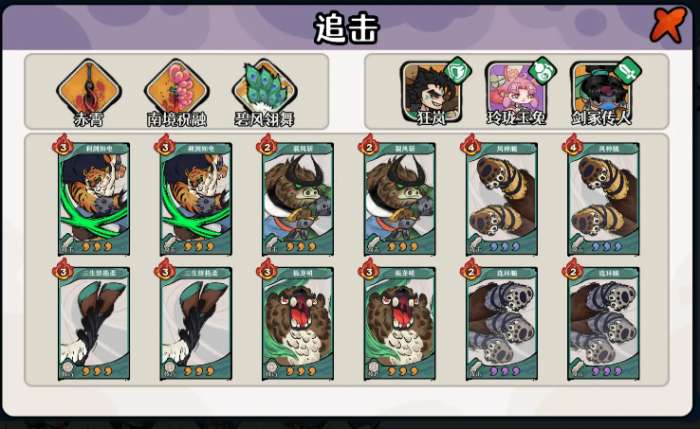 在阵容构筑上,以风神腿为核心的追击流卡组,适配角色如追风剑客、凶神恶煞等具备高机动性或强控场能力的武侠单位。试炼任务、蓬莱冲塔及攻雷副本中,该流派凭借高频打击与精准目标锁定能力,往往能在前中期迅速建立优势,实现单卡驱动双卡协同作战的战术效果。