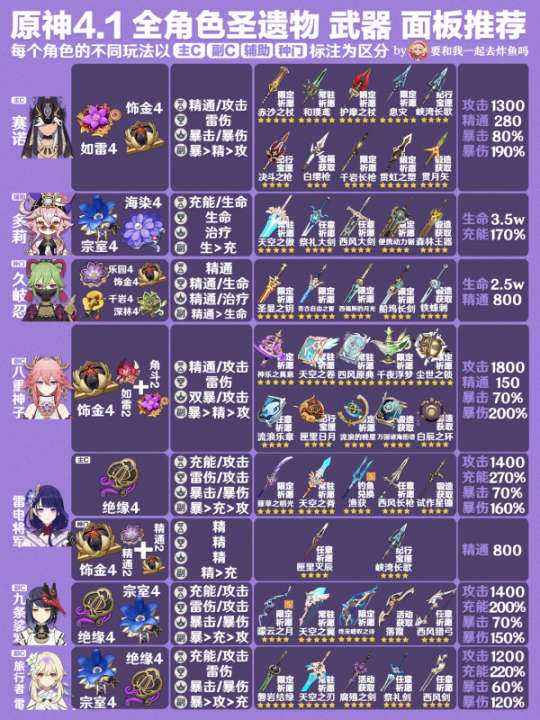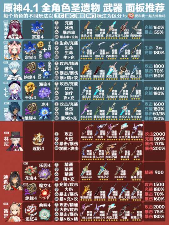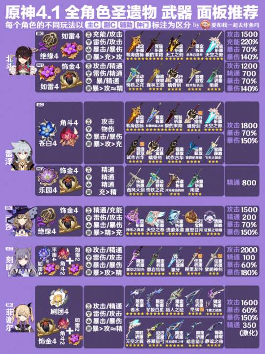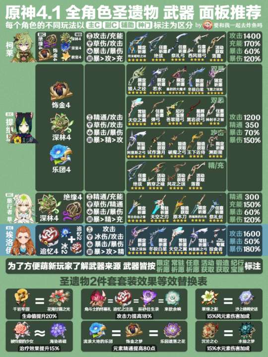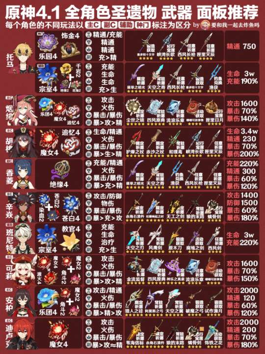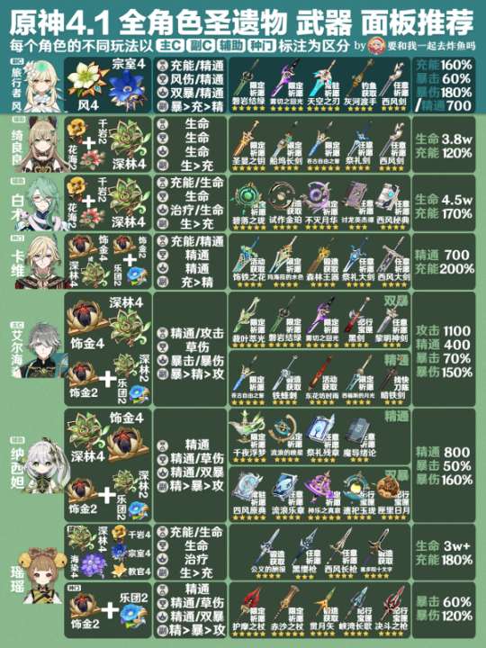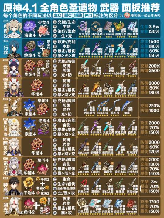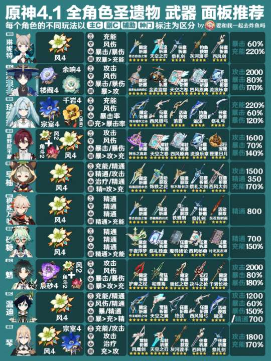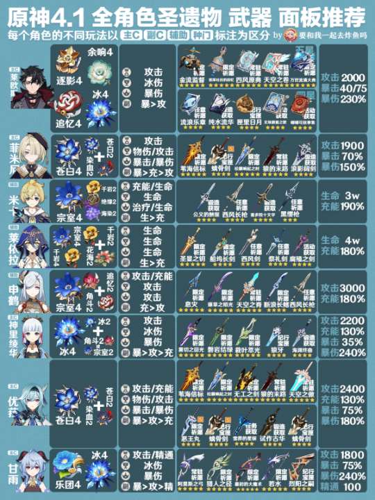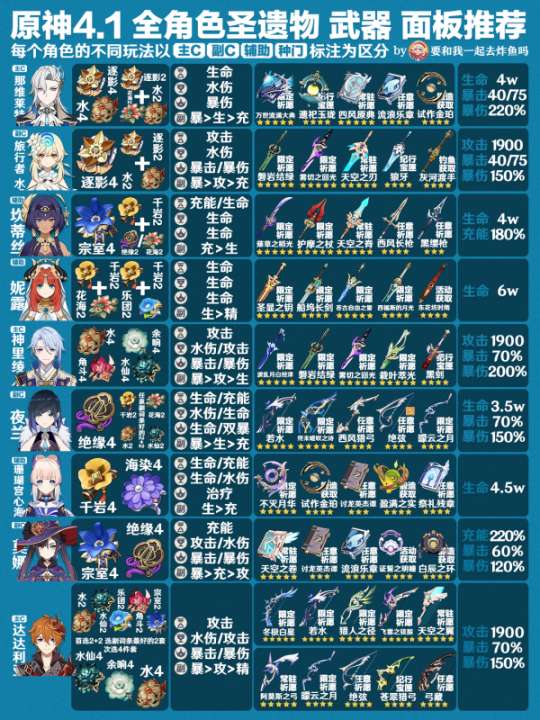 各位旅行者好呀,今天给大家带来的是全角色 面板 武器 圣遗物推荐攻略