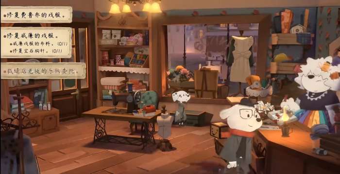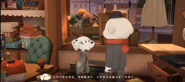 2、在裁缝铺对话完之后其他狗狗会出去。就和剩下的那一只拘狗对话