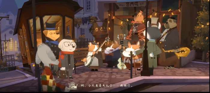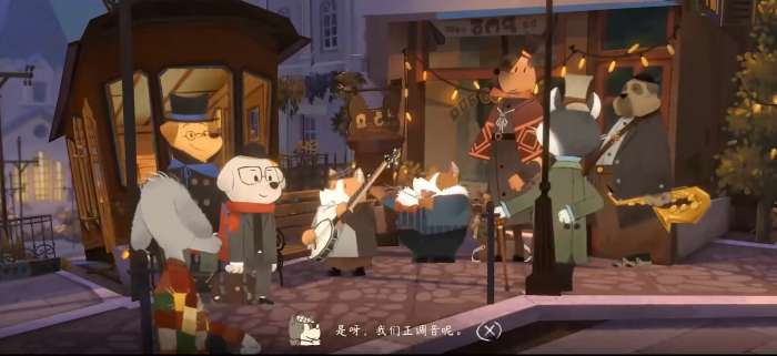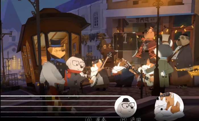 1、先在电车站附近遇到狗狗乐队,获得音符