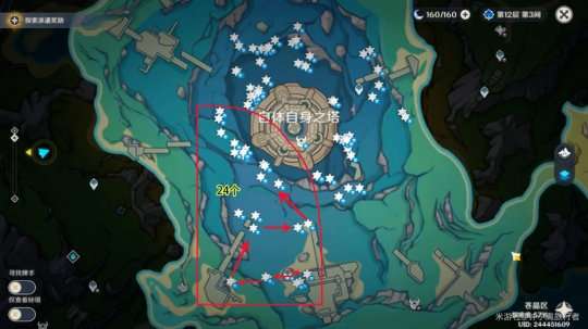 路线三:自体自身之塔左下边,50-73,可收集24个