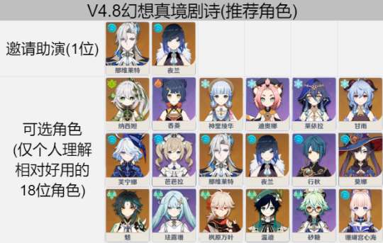 ♢参演要求:推荐相对实用的18名角色;