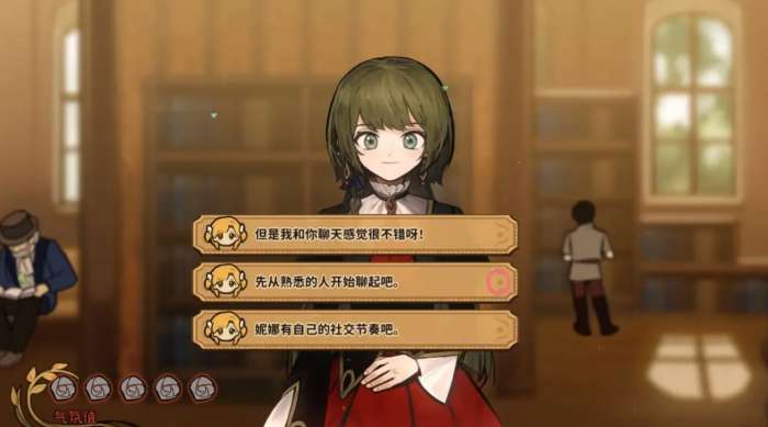 第二个方案是玩家通过活动选项,来取得尼娜的好感度,场景内的好感度可以直接选择,剧院流浪狗、挚友一生、浪漫的爱情,随后,玩家也可以在图书馆内,和尼娜攀谈未来的计划,同时聊聊儿时回忆,即可获取大量好感度加成。