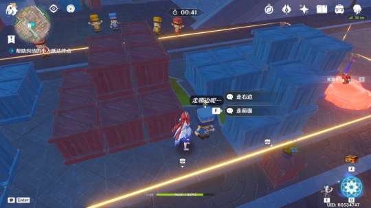 当他靠近路口选择方向就行,分别是「走右边」和「走前面」。
