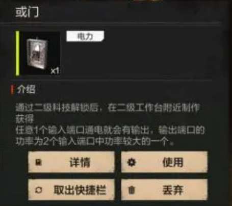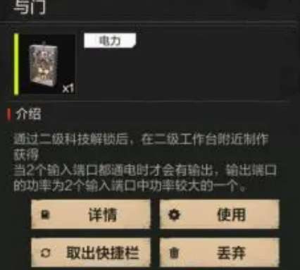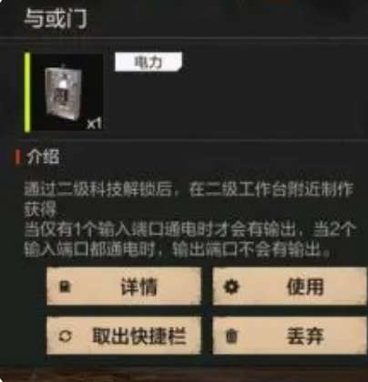 然后是与或门,这个元件比较特殊。它的名字听起来有点拗口,但是理解了以后会发现挺实用的。与或门也是有两个输入端,不过它的逻辑跟与门不太一样。当只有一个输入端通电的时候,输出端是正常供电的,但要是两个输入端同时通电了,输出端反而会断开。这个特性在某些特殊场合很有用,特别是需要制造一些反常规效果的时候。