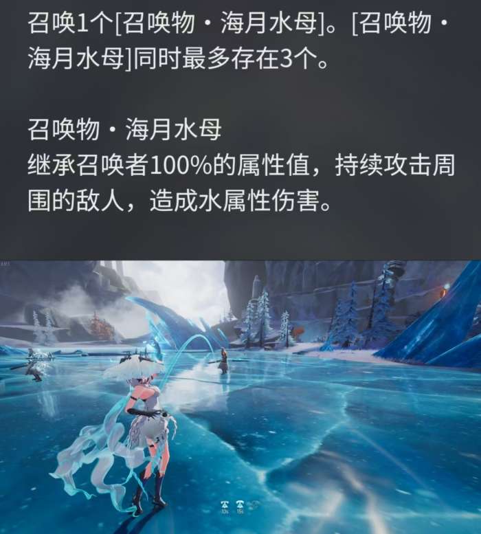 小技能是指定位置放水母,自动攻击半径范围内的敌人,最多同时在场3只,二塑可以提升到5只。