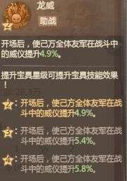 ①效果:开局使己方全体友军威仪提升8.4%。