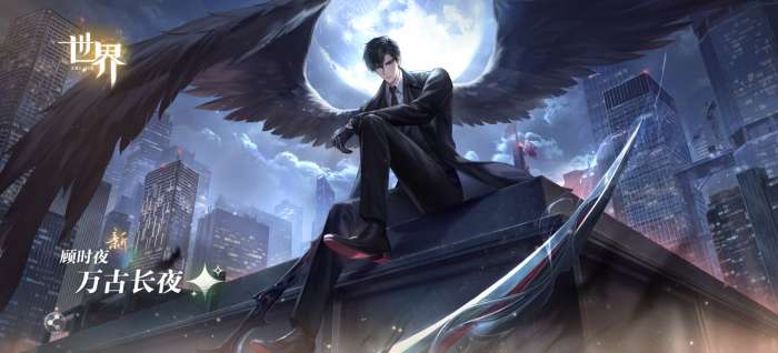 顾时夜世界侧影“万古长夜”,月光之下高楼之上,带着翅膀的西装造型十分帅气神秘;柏源“归途无名”,一段背后也有翅膀;易遇“千山暮雪”世界限定侧影;以及夏萧因的”月上黄泉”,通过每张侧影都能看出来每个男主的身份很是神秘且带感。