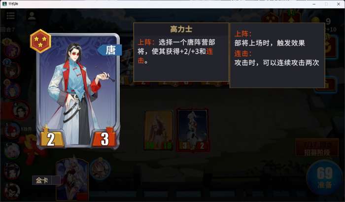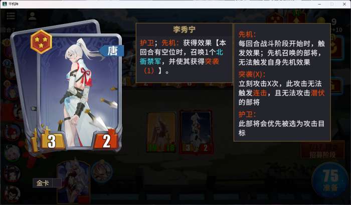 三本次核心唐李秀宁,自带嘲讽和召唤,核心卡之一,后期配合武则天李白能给唐快速刷属性
