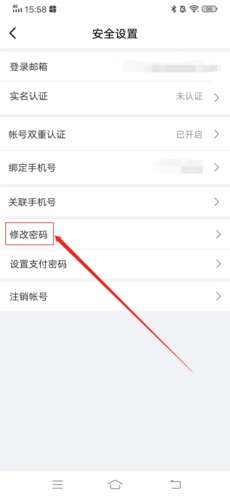 3、在这里我们就能看到修改密码的选项了,点击它;