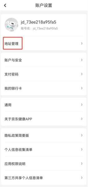 3、再次点击地址管理进入设置;