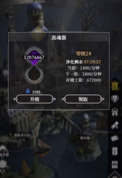 升级的时候有几个细节得特别注意,第一个是阶段突破,每升10级就会遇到一个瓶颈,必须用魂之契印才能继续升级,这种契印只有每周军团试炼的排名奖励能拿,所以得优先给主力汲魂器用,第三个是能量吸收的操作,每次打完副本或者挑战BOSS之后,一定要记得去汲魂器界面点吸收,把战斗中产生的游离魂能收了,能量满了之后会触发一个24小时的属性增幅。