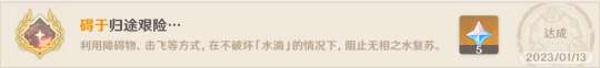无相水在濒死时会召唤三个水滴,这三个水滴会向无相水缓慢移动,我们不要破坏这三个水滴,利用岩造物或击飞等手段阻挡三个水滴一段时间,无相水也会复苏失败,就可以获得这个成就,推荐使用岩柱加钟离,岩主的元素爆发至少可以阻挡一个水滴,钟离短e立柱子也可以阻挡,如果另一个没有被阻挡的话可以利用物理或水元素的重击阻挡,直到无相水复苏失败即可