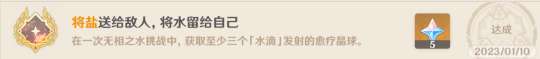 无相水会在战斗开始时召唤两种水滴,其中深蓝色的会攻击玩家,浅蓝色的会向无相水本体吐出治疗水泡,玩家吃掉这个水泡也可以回复生命值,我们在不击破这两个水滴的情况下击败无相水即可获得这个成就