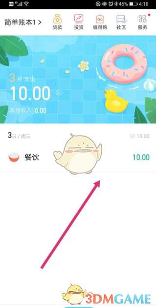 1、在随手记选择账本中的任意一个账单记录,选择点击;