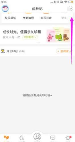 2、在成长期的主界面,手指滑动一下界面,就会在右上角出现一个扫码的图标。