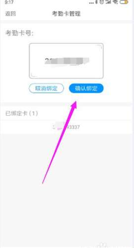 4、扫描成功之后,核对一下卡号是否正确,然后点击确认【绑定按钮】。