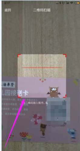 3、拿出自己的幼儿园接送卡,上面会有一个二维码,然后对着二维码进行扫描。