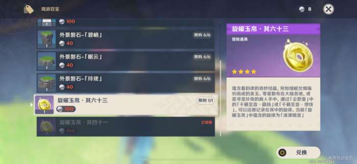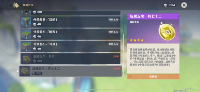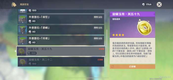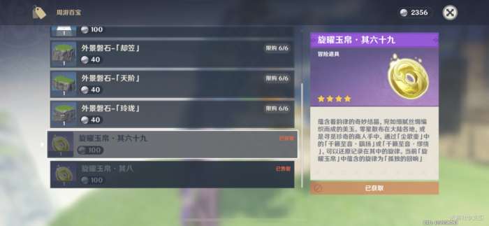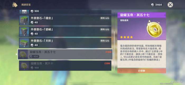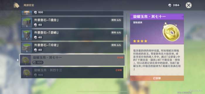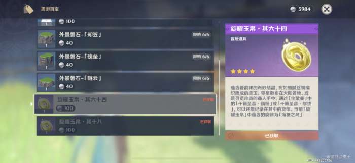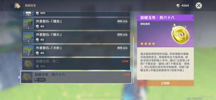 (一共有18个旋曜玉帛,需要花费1800洞天宝钱购买)