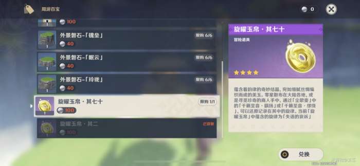 (每周可以购买两个旋曜玉帛,可能其中会有已获得的旋曜玉帛)