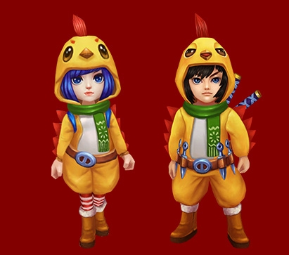 小鸡时装是当时专门为2017鸡年而量身定制的时装,很夸张地将玩家变成了两只小鸡,相当可爱!男女都有一头鲜红色的鸡冠,头套模仿小鸡的造型,再配上一身惹眼的大黄色,简直萌得不可方物有木有!