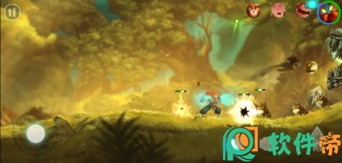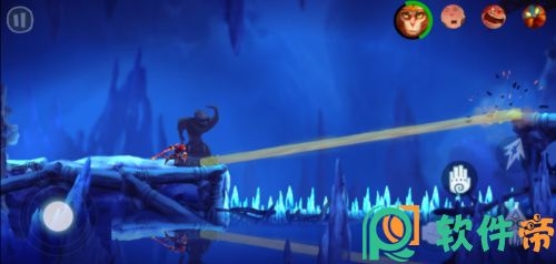 师徒四人不仅有着专属的技能和设定,在平台跳跃方面也各司其职。悟空和沙僧可以二段跳,而唐僧和八戒拥有着滑翔的技能。面对不同的关卡,只需要点击屏幕右上角的角色头像,就可以切换到对应的角色进行操作,手机上切换角色的设定确实比PC和主机上要方便许多!而假如有某个角色不幸遇难,只需要使用其他角色将遇难的灵魂收集回来,就可以成功复活该角色,这样简单的复活设定,也极大地降低了新手玩家的操作门槛。