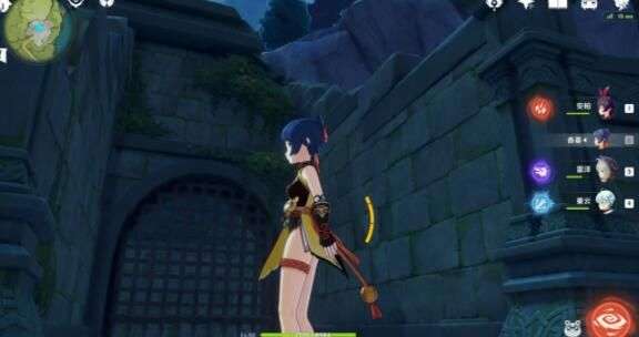 玩家要利用风神瞳,跳到画面之中上面的这个石头门的位置。