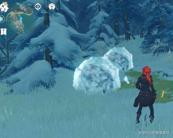 在空中我们就可以看到3个明晃晃的冰雕,那就是三只野猪,降落,用火属性攻击融化掉冰层,然后击杀即可得到冷鲜肉~~(其实搞不懂难道冷鲜肉比新鲜的肉还要新鲜?)