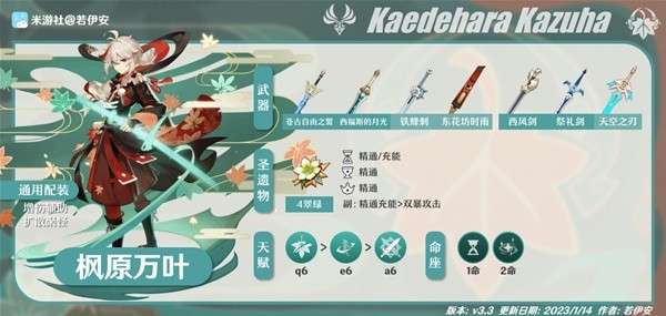 输出核心数2.5,刻晴菲谢尔>万叶。